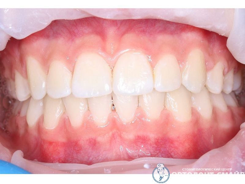Результат лечения на самолигирующей брекет-системе (пациент пришёл к нам 9 месяцев назад с уже установленными брекетами в другой клинике)