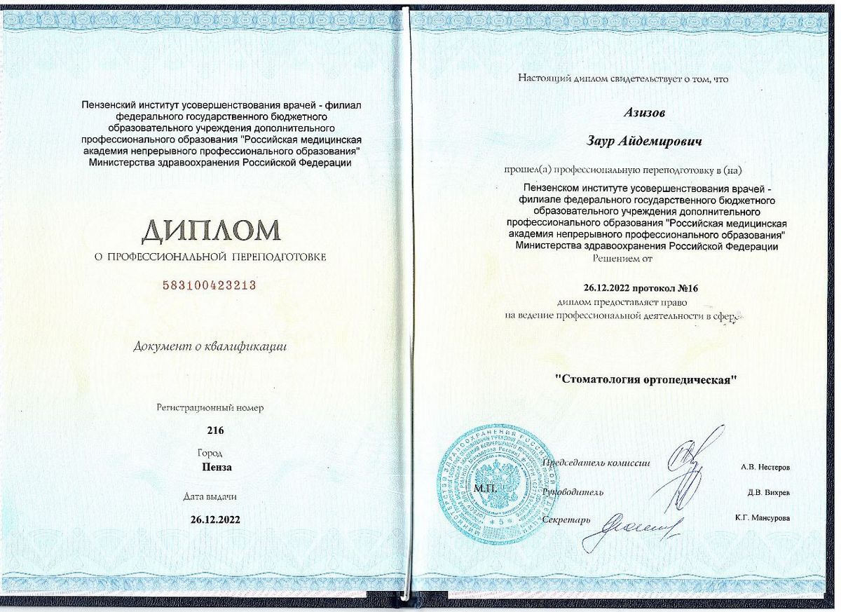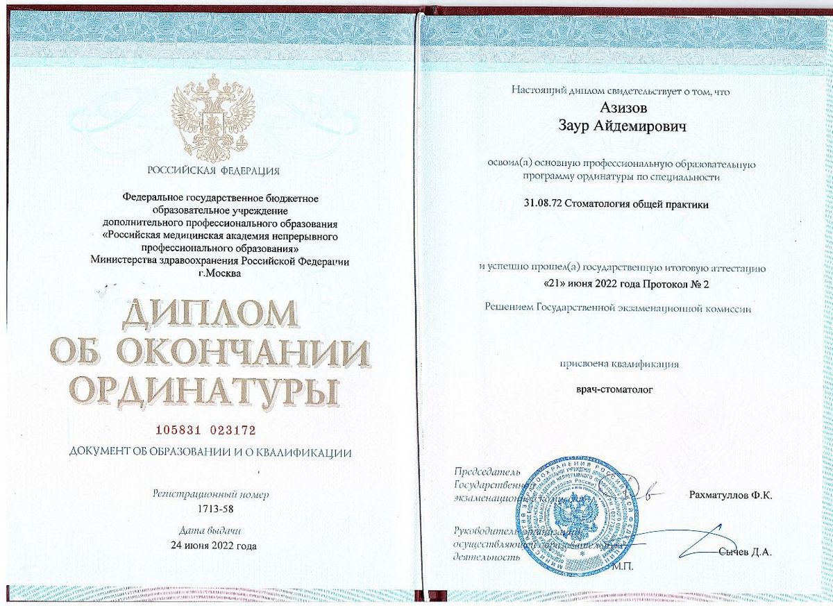 - Российская медицинская академия непрерывного профессионального образования, г. Москва – стоматология общей практики