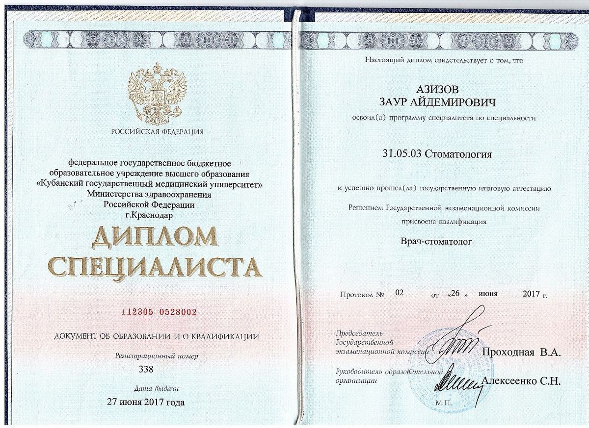 - Кубанский государственный медицинский университет, г. Краснодар – стоматология